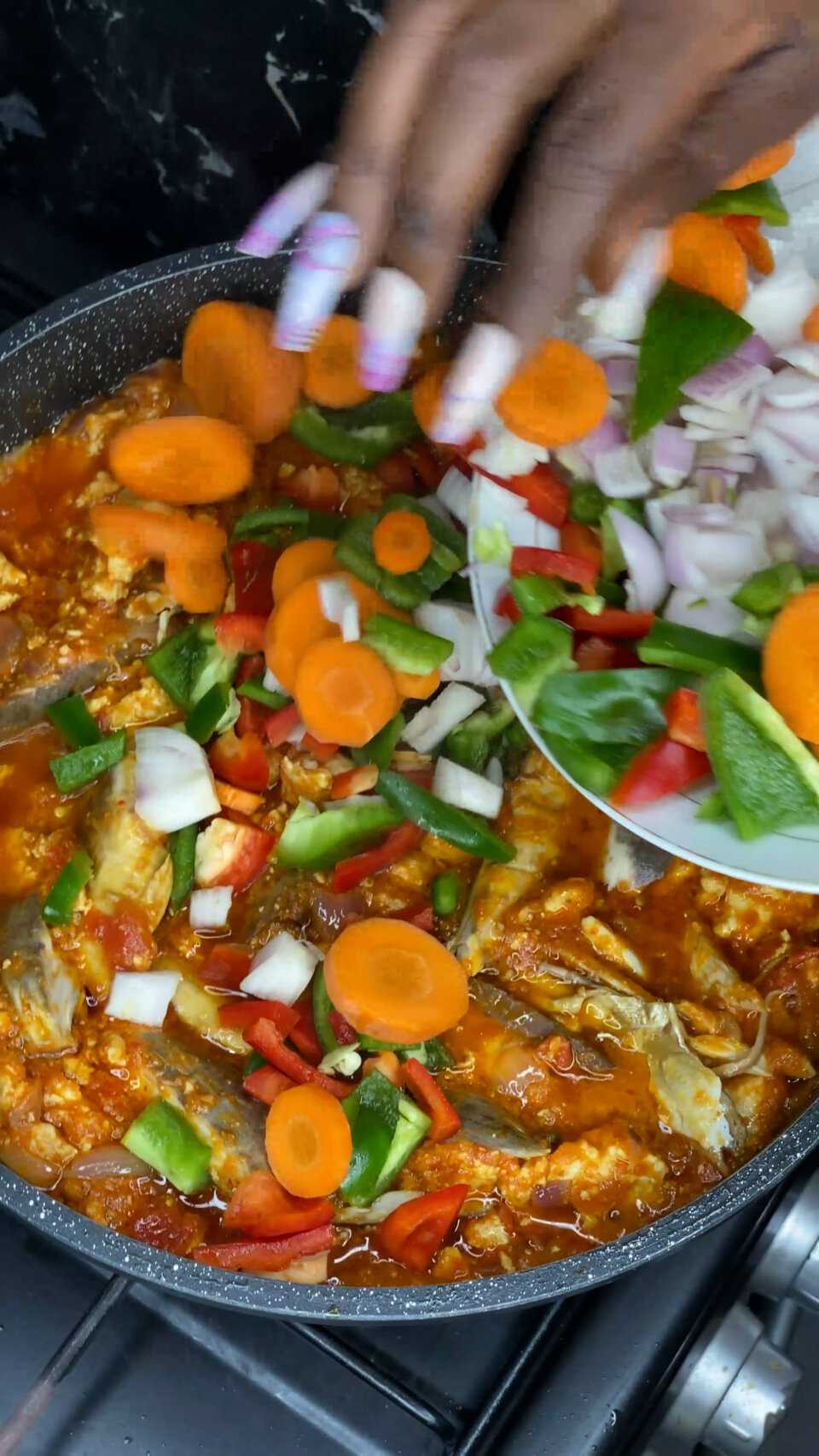 Fresh carrots and bell peppers make the stew vibrant and appealing. They also add a natural sweetness that balances the spices.