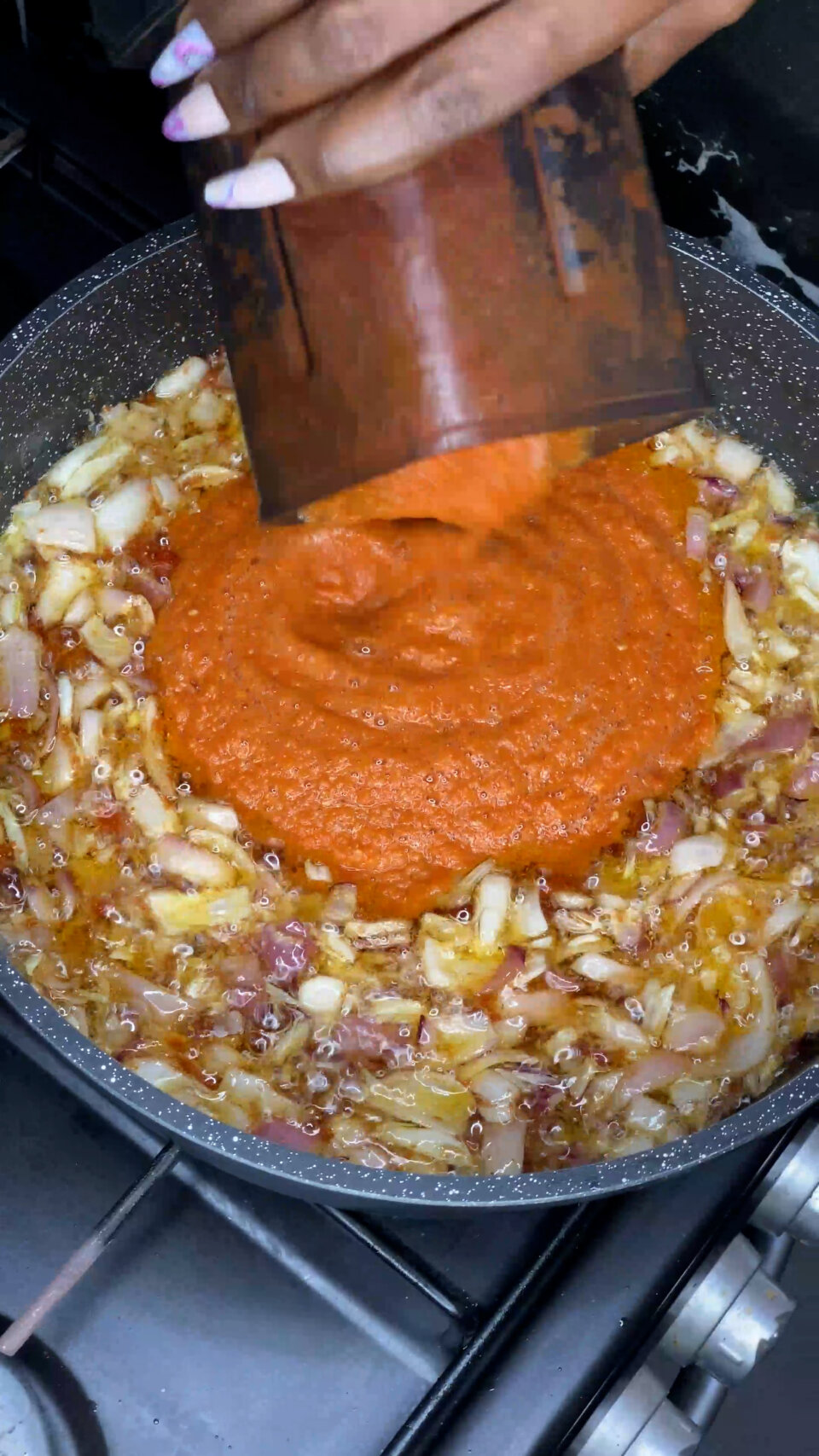 - Always cook the tomato base until the oil rises before adding agushi.